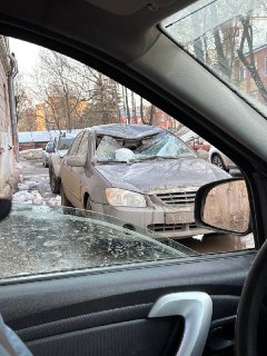 Еще минус две легковушки из-за сошедшего с крыши льда в Подольске🙈