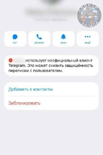 «Абонент использует неофициальный клиент Telegram. Это может снизить защищённость переписки с пользователем».