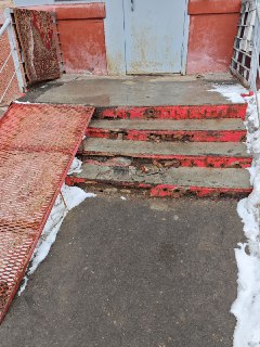 Каждую зиму УК лишь маскирует проблему цементом, но качественного ремонта нет, и ситуация только ухудшается. Ждать исправления приходится снова и снова, хотя у соседних подъездов лестницы сделаны более основательно.